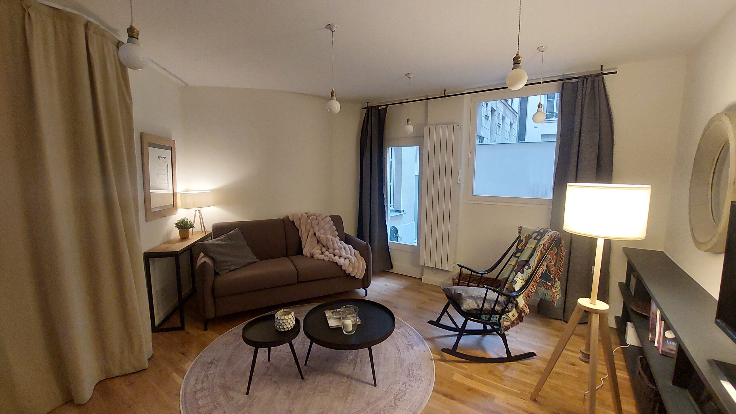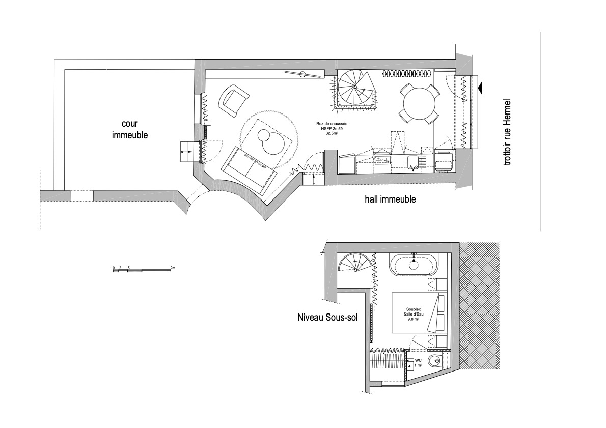 Welcome to Boutique Hermel, a uniquely designed duplex that blends Parisian history with modern luxury. Originally an architect’s office, this space was masterfully reimagined in 2026 into a sophisticated 43 m2 retreat. It is 33 m2 upstairs with 10 m2 downstairs.