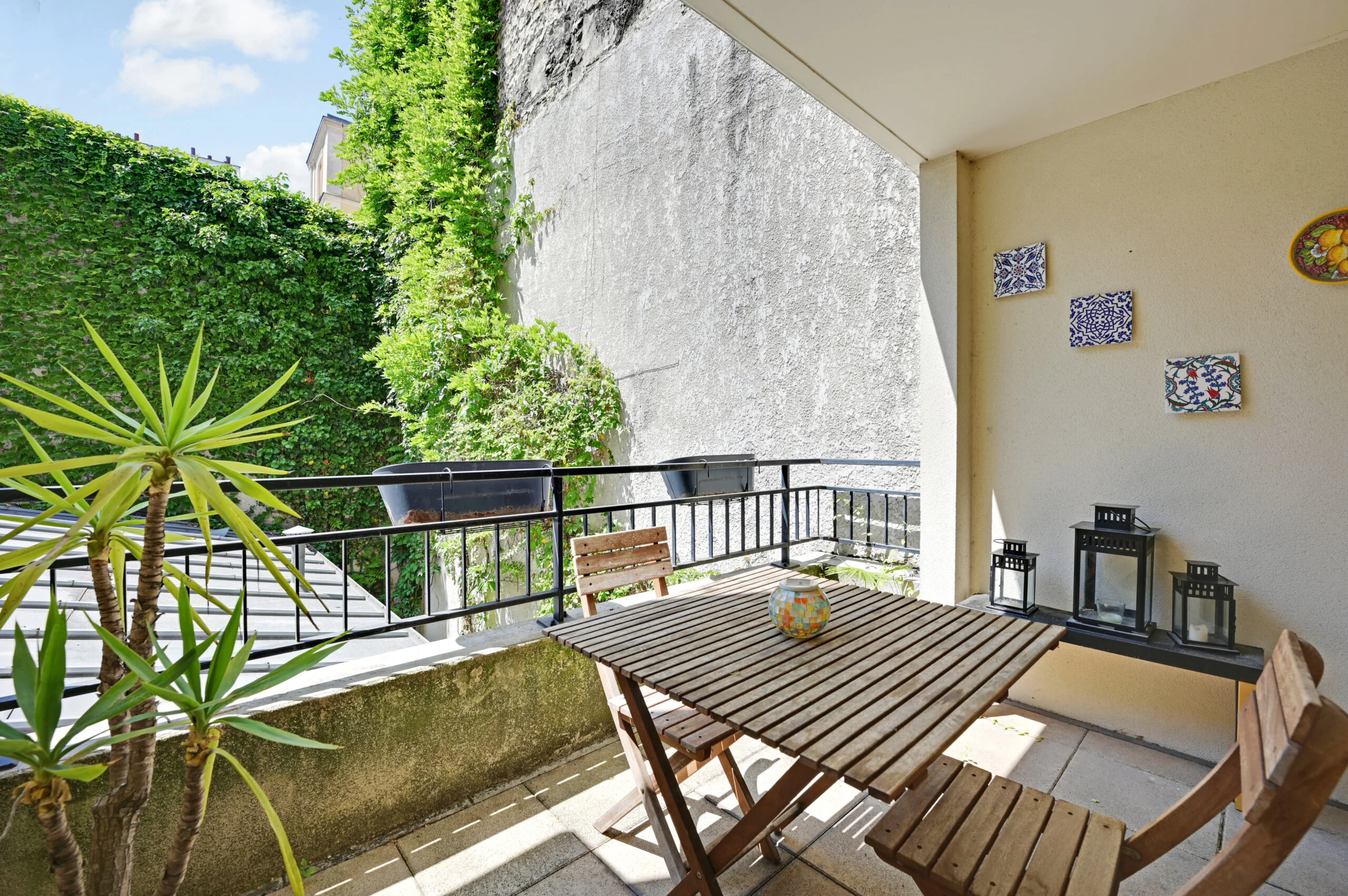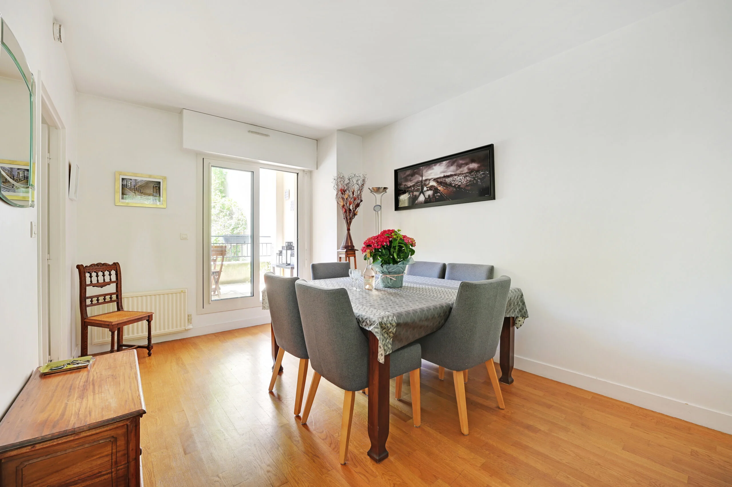 This one bedroom apartment can sleep up to 4 people and is located on the Canal St Martin. Within walking distance of the Marais, it has all amenities close by: local shops, supermarkets, food and art market, as well as an excellent choice of restaurants and cafes. The flat overlooks the Canal St Martin at the front while the terrace is at the back so there is no vis-a-vis from the terrace! The apartment has an entrance hall, a large dining/sitting room, an en-suite bedroom, separate toilet and a standalone kitchen equipped for people who love cooking. Both the kitchen and the dining side of the salon open onto a terrace overlooking a small garden.