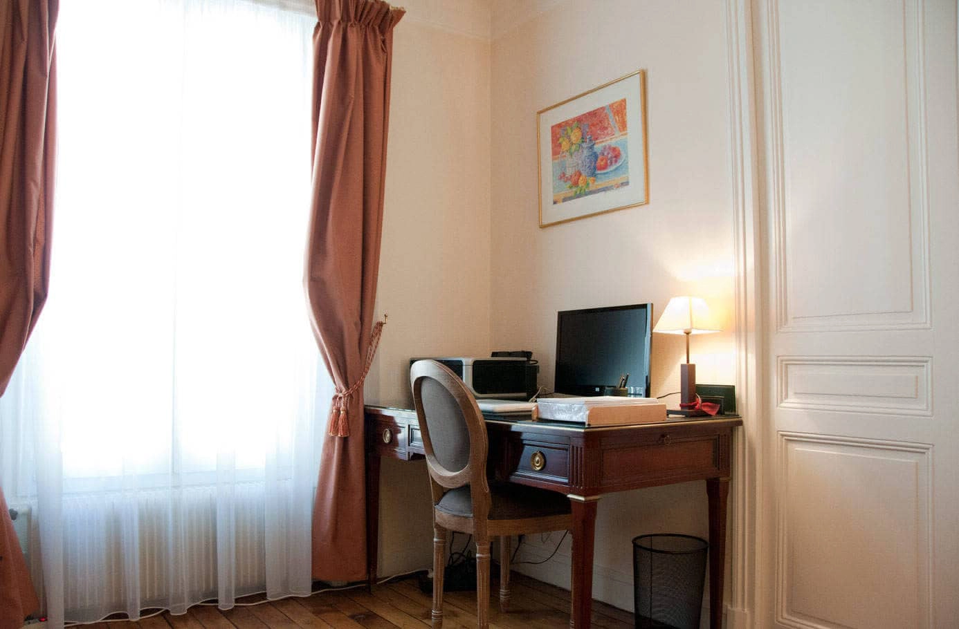 The library on the upper level can serve as an office should you need to work during your stay in Paris. It can also be a second living room with a small sofa and a fold-out single bed. The laundry room is next to the kitchen on the first floor and contains a separate washer and dryer. This room also has a large, wall-mounted, drying rack if you prefer to air-dry your clothing. Grand Lepic is a luxurious abode, the grandeur of which is rare in Montmartre - a haven of classicism and good taste.