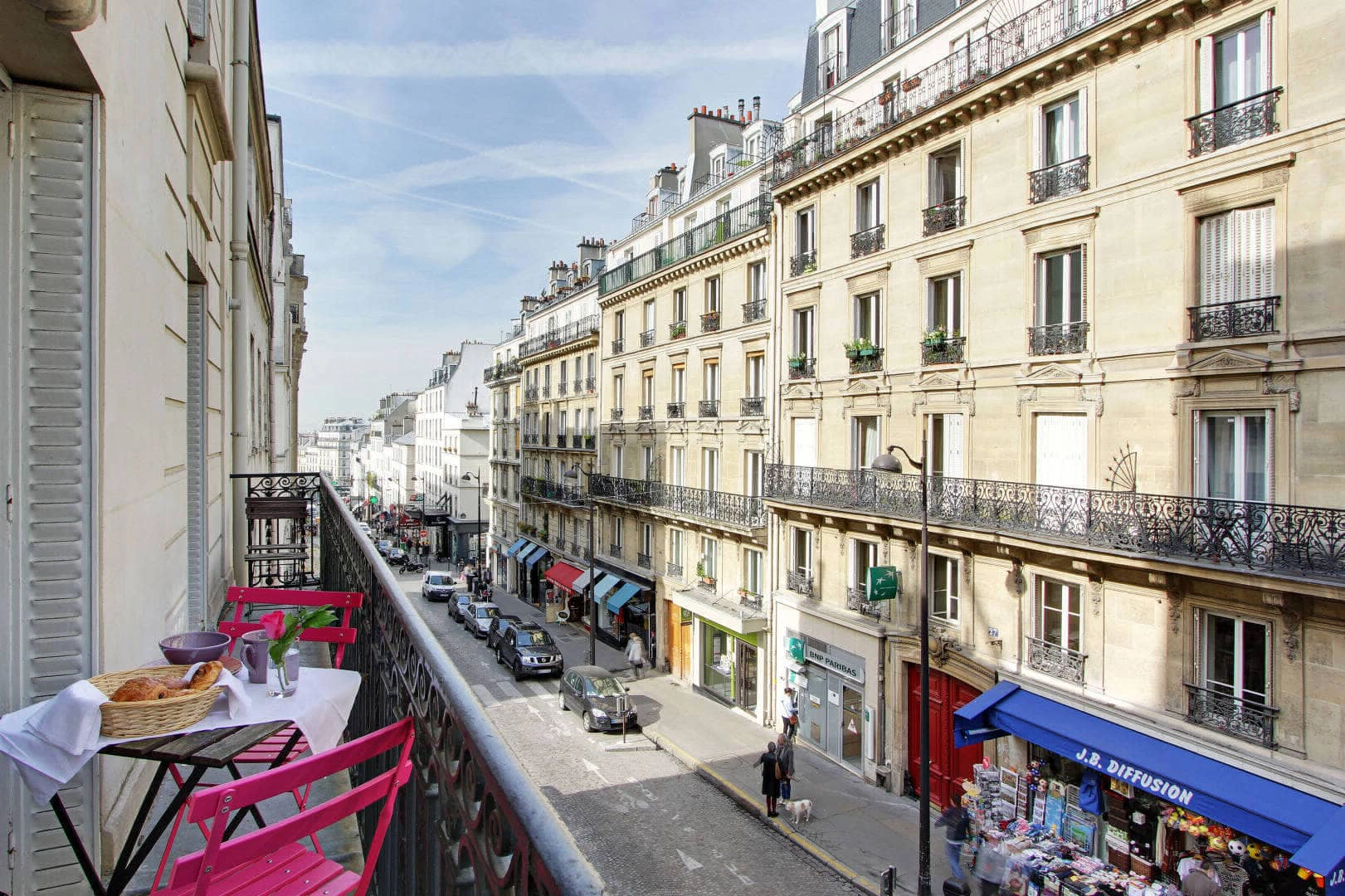 This Paris flat sleeps up to eight adults and two children. It is situated in a classical Hausmannian residence that dates back to 1892. The building was once the residence of the dancers and performers of the world-famous Moulin Rouge located just down the street at Place Blanche. This holiday flat is a duplex on two floors with five bedrooms, three full bath/shower rooms and one separate toilet. A large balcony runs the length of the apartment means you can soak up the ambience of Montmartre, one of the most original neighbourhoods of Paris.