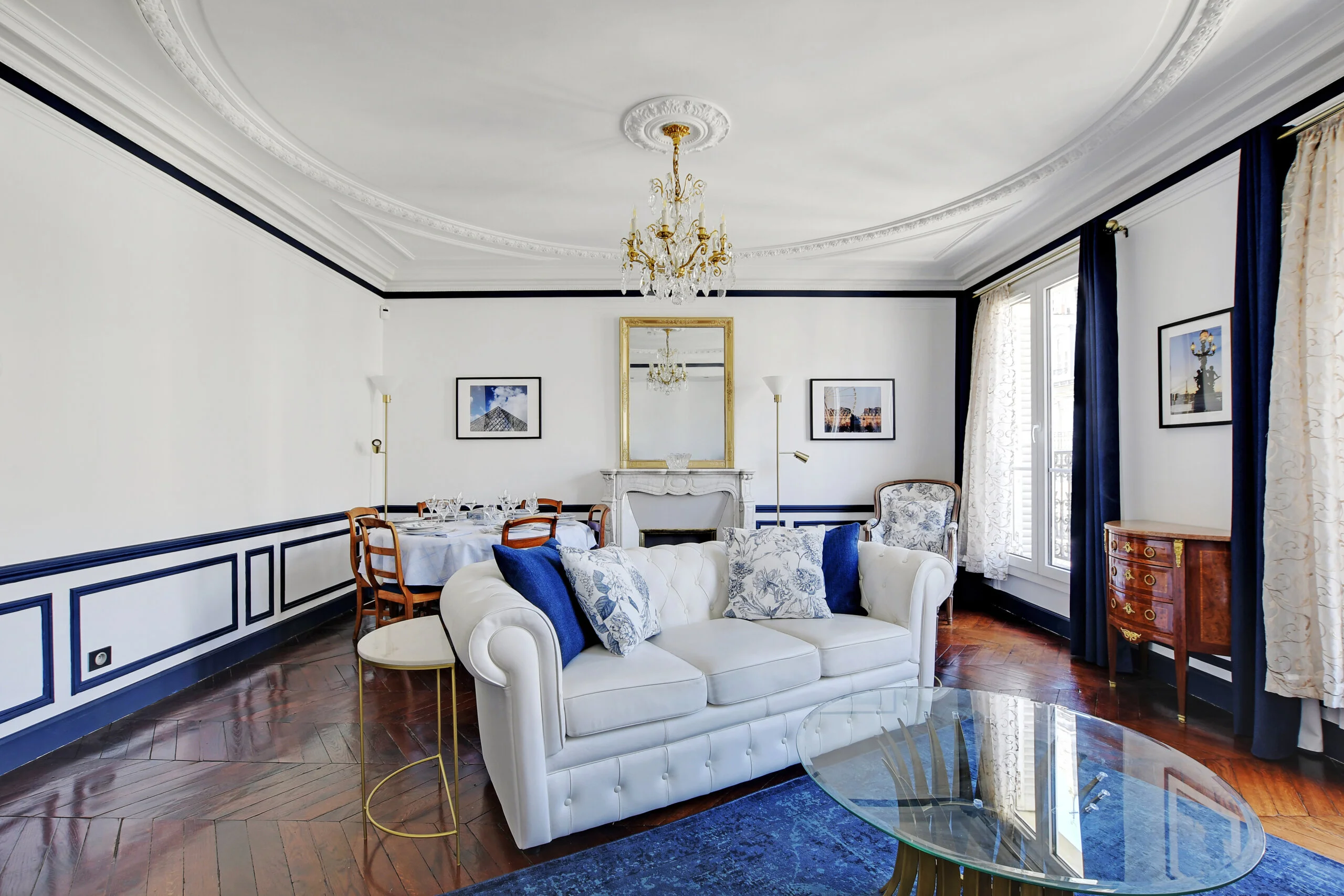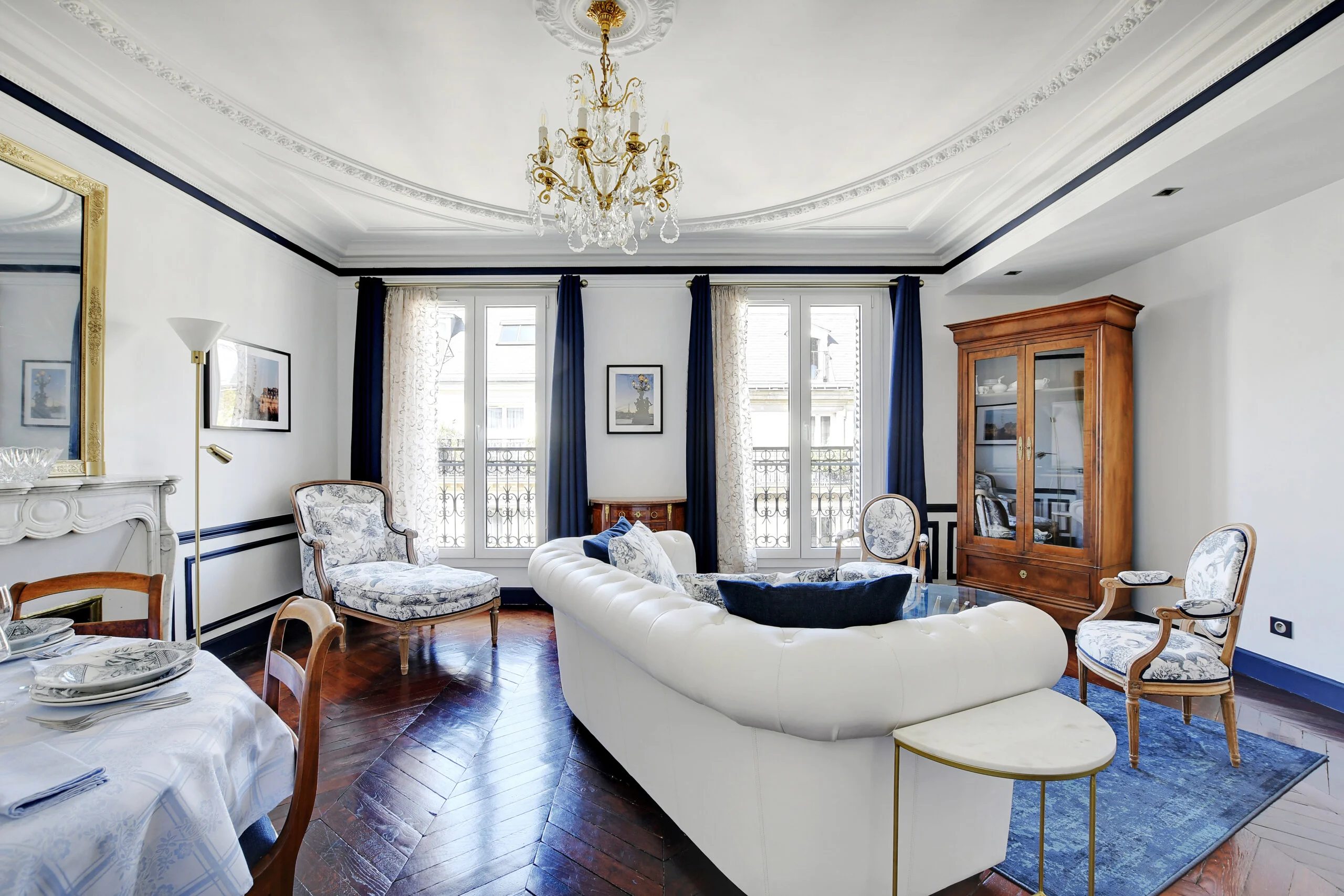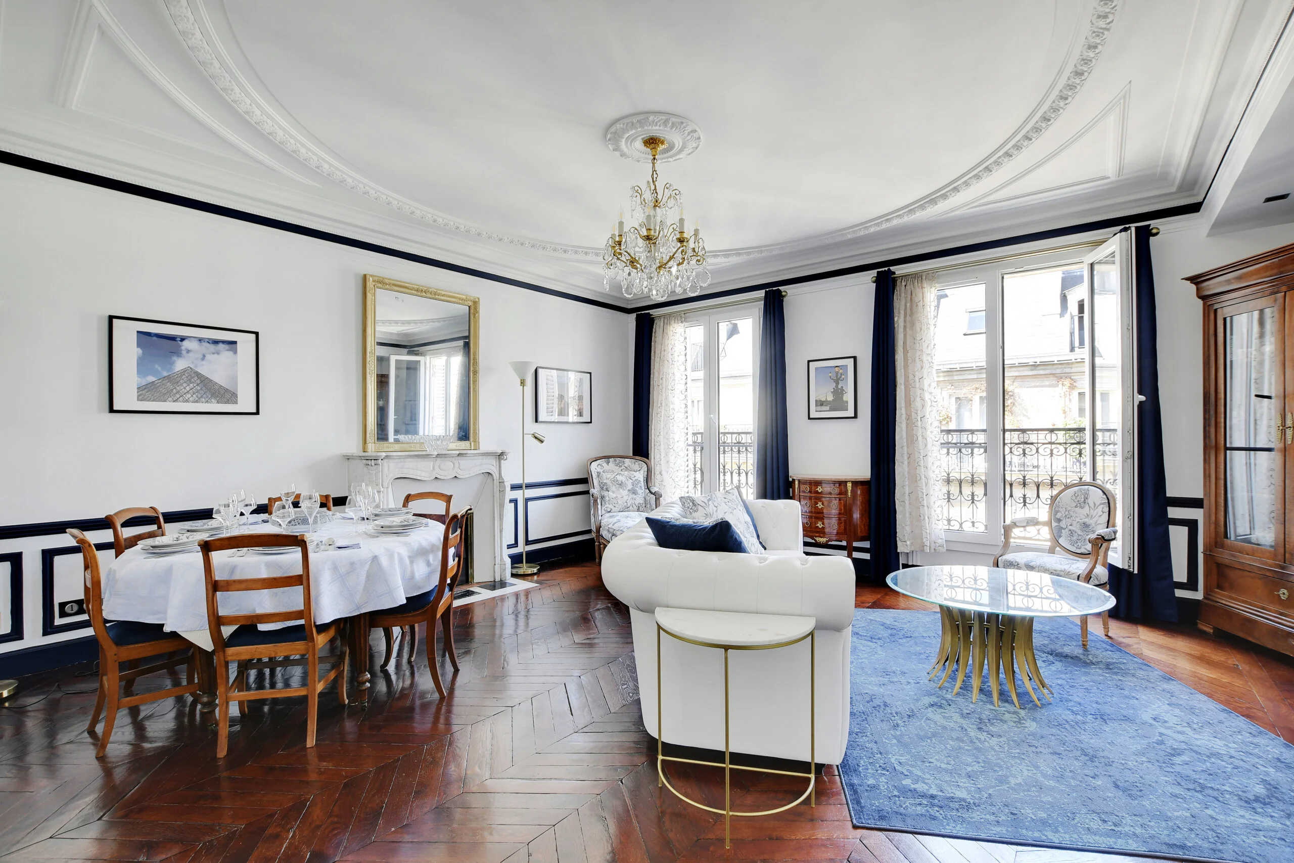 This quintessential Parisian apartment has been lovingly restored and renovated by the owners in 2022. They took full advantage of the classic features and enhanced them with modern accents. You even have the family's vintage china that was brought to the flat. The owners took all the photos adorning the walls.