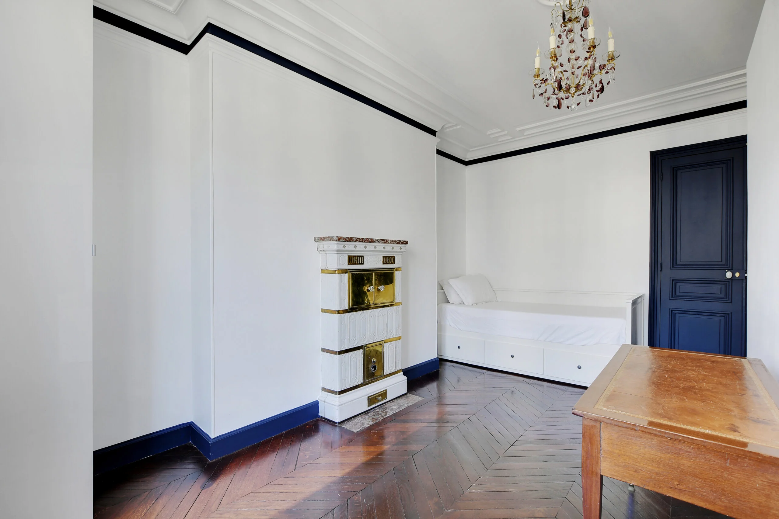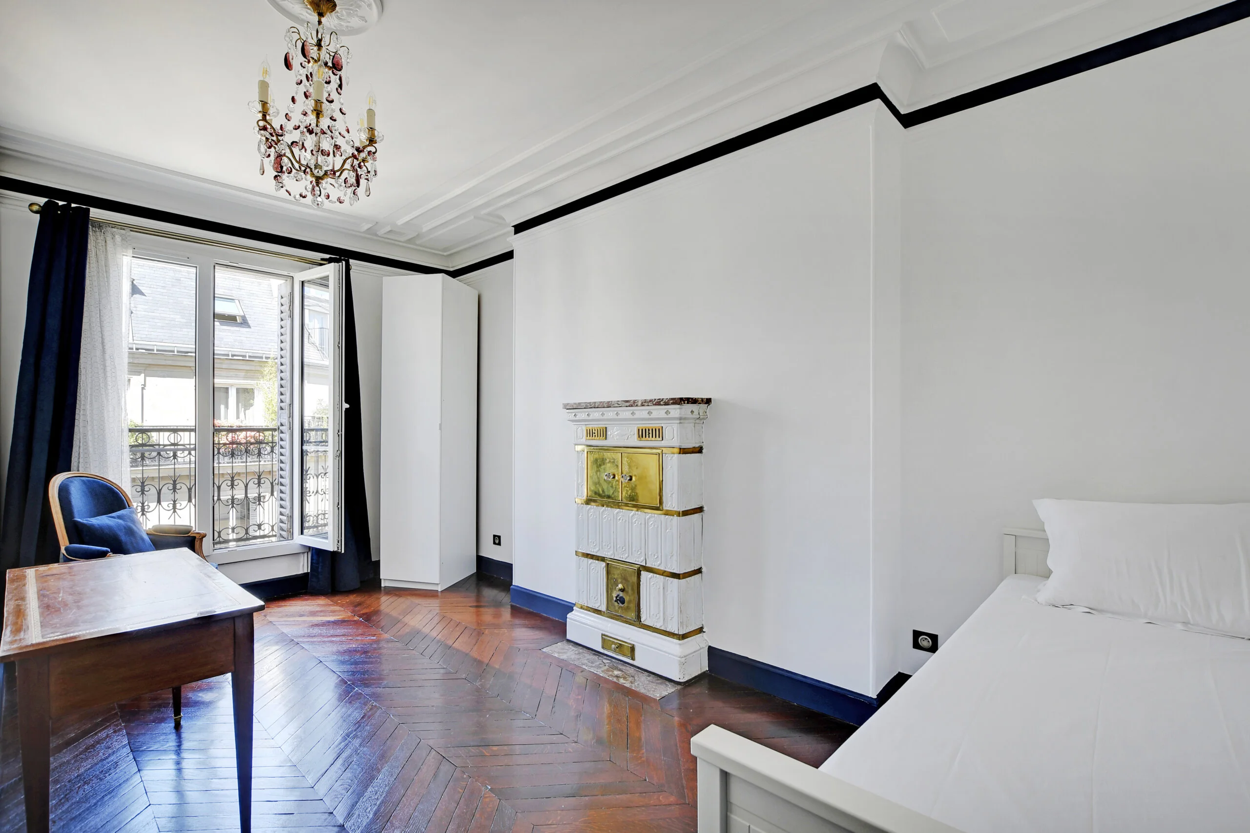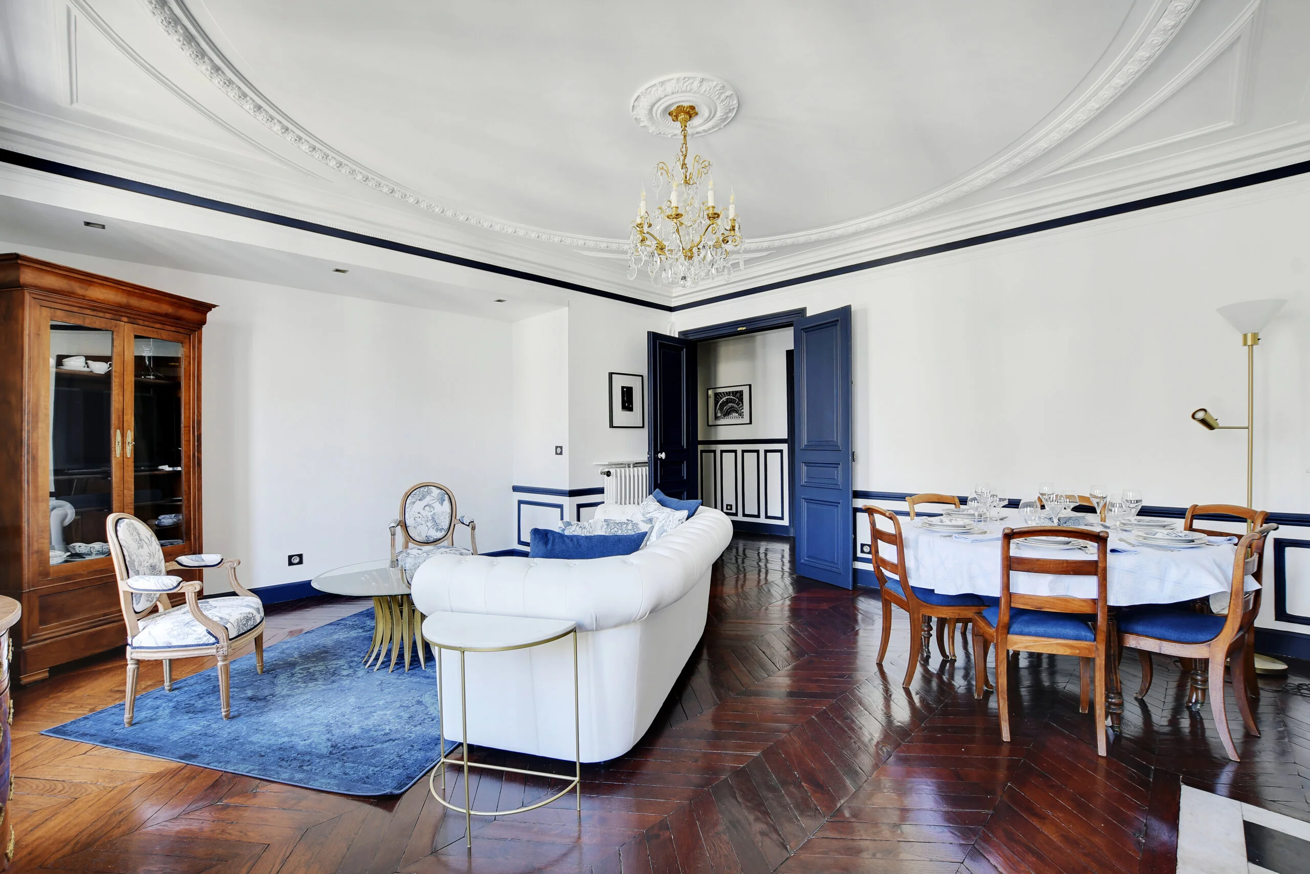 This quintessential Parisian apartment has been lovingly restored and renovated by the owners in 2022. They took full advantage of the classic features and enhanced them with modern accents. You even have the family's vintage china that was brought to the flat. The owners took all the photos adorning the walls.