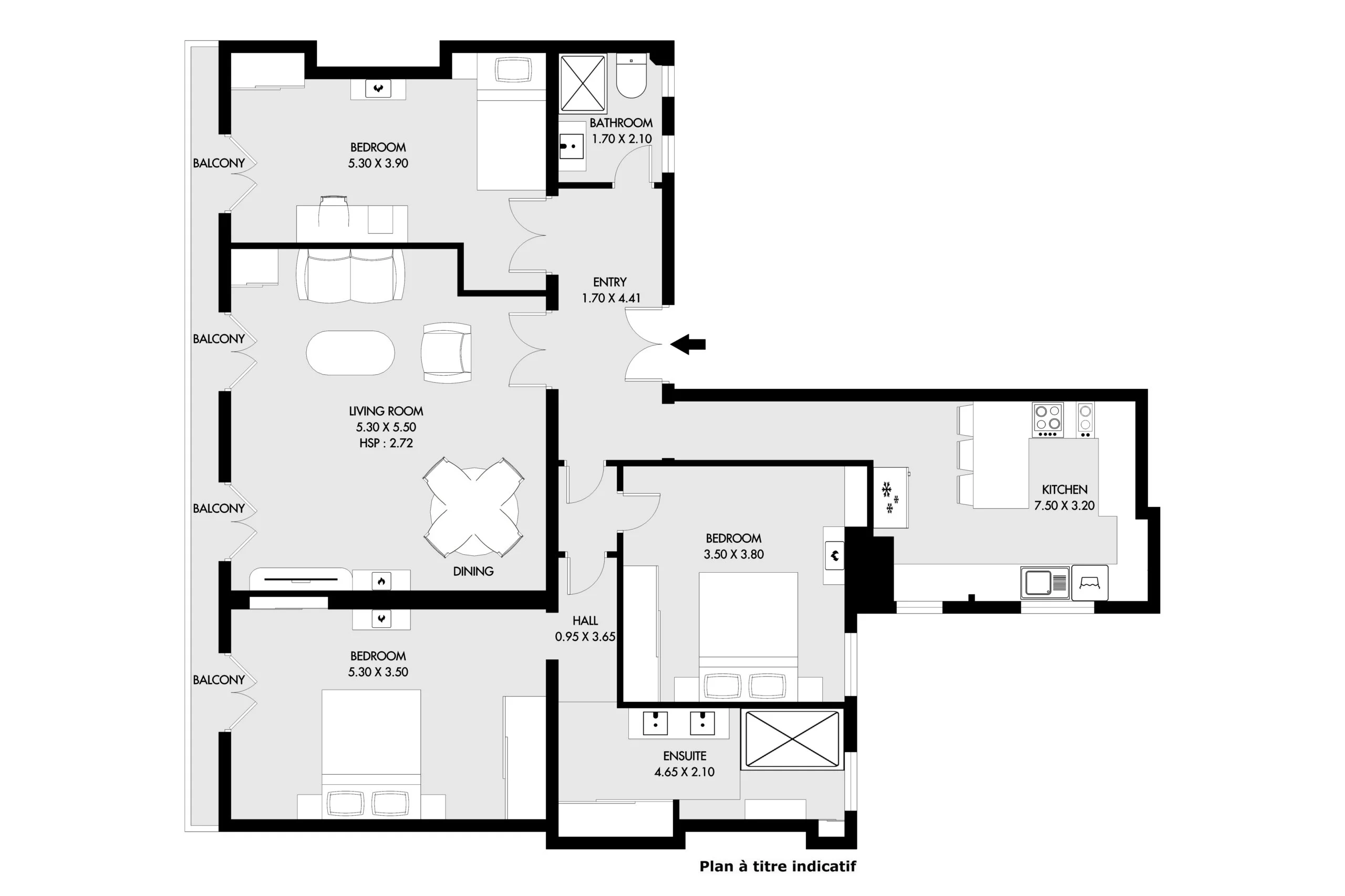 Upon entering the apartment, immediately in front of you is a grand living area that fills with sunlight in the afternoons. It offers a comfortable sitting area along with a 6-seat dining space. Modern electronics are discreetly hidden in the buffet with a connected television and a Sonos sound system.