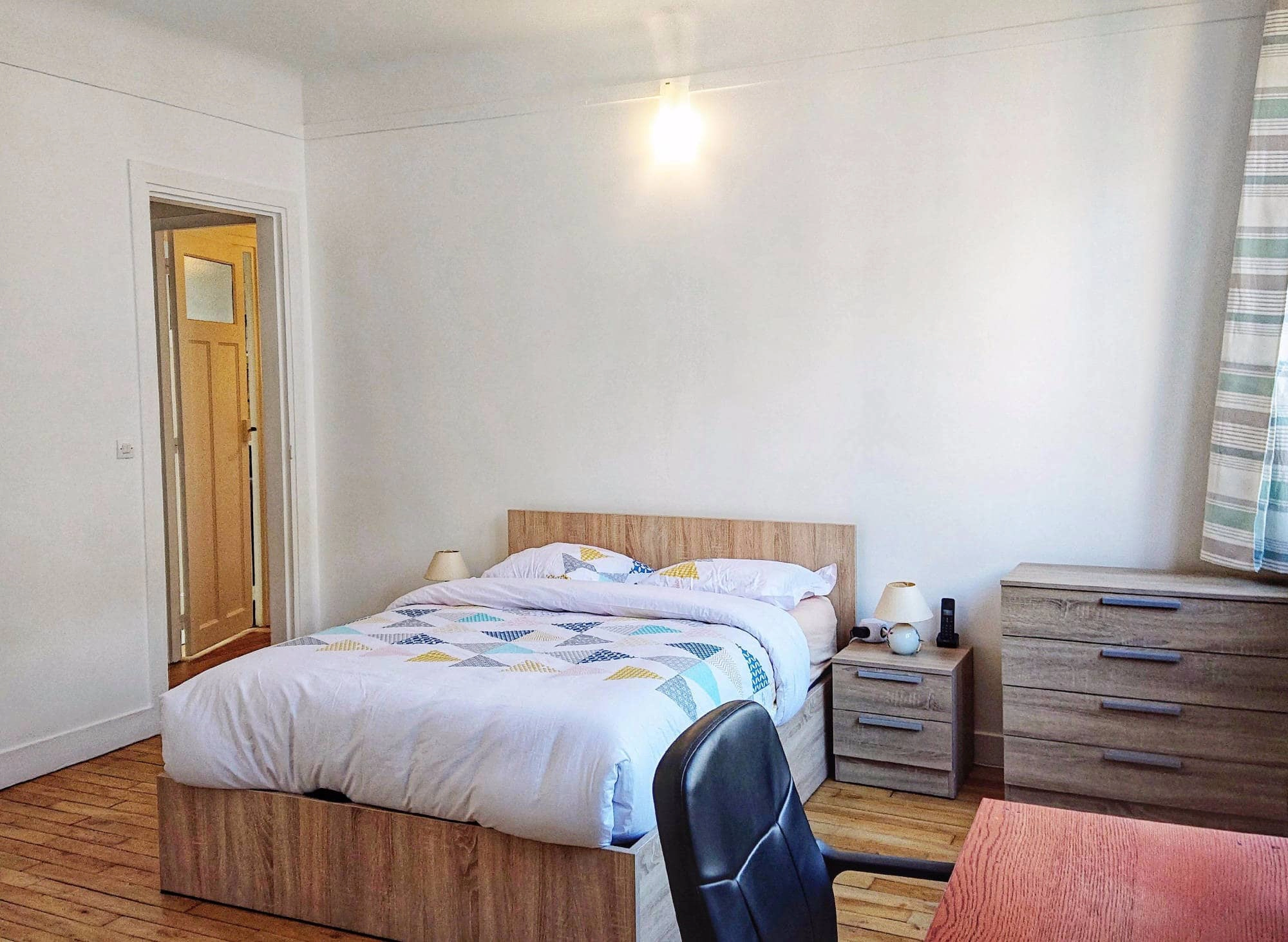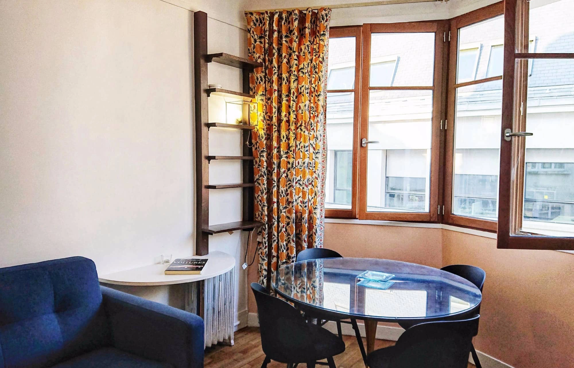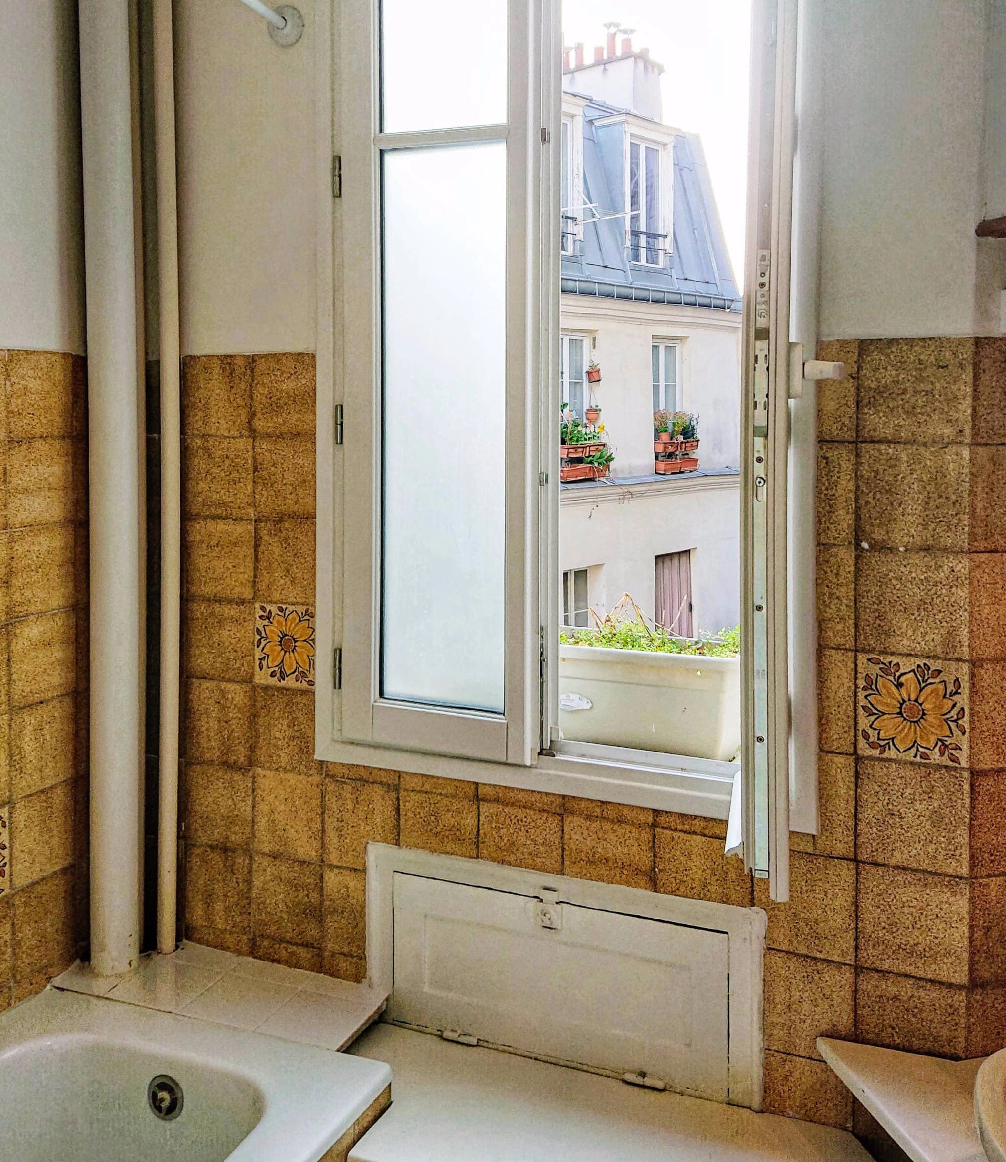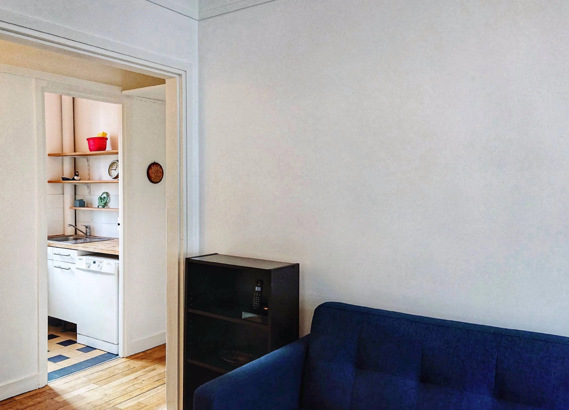 With parquet floors, simple decoration and windows in every room, the apartment is bright and welcoming even in the dullest weather. When you enter the flat, the kitchen is immediately to your right and salon to your left. There is a door at the end of the hallway that leads to the bedroom and, just before this door is the bathroom. The living area has a comfortable sofa bed which can sleep two people if you have guests visiting you. There is a comfortable dining table with seating for four - pick a seat by the window so you can gaze out at Sacre-Coeur!