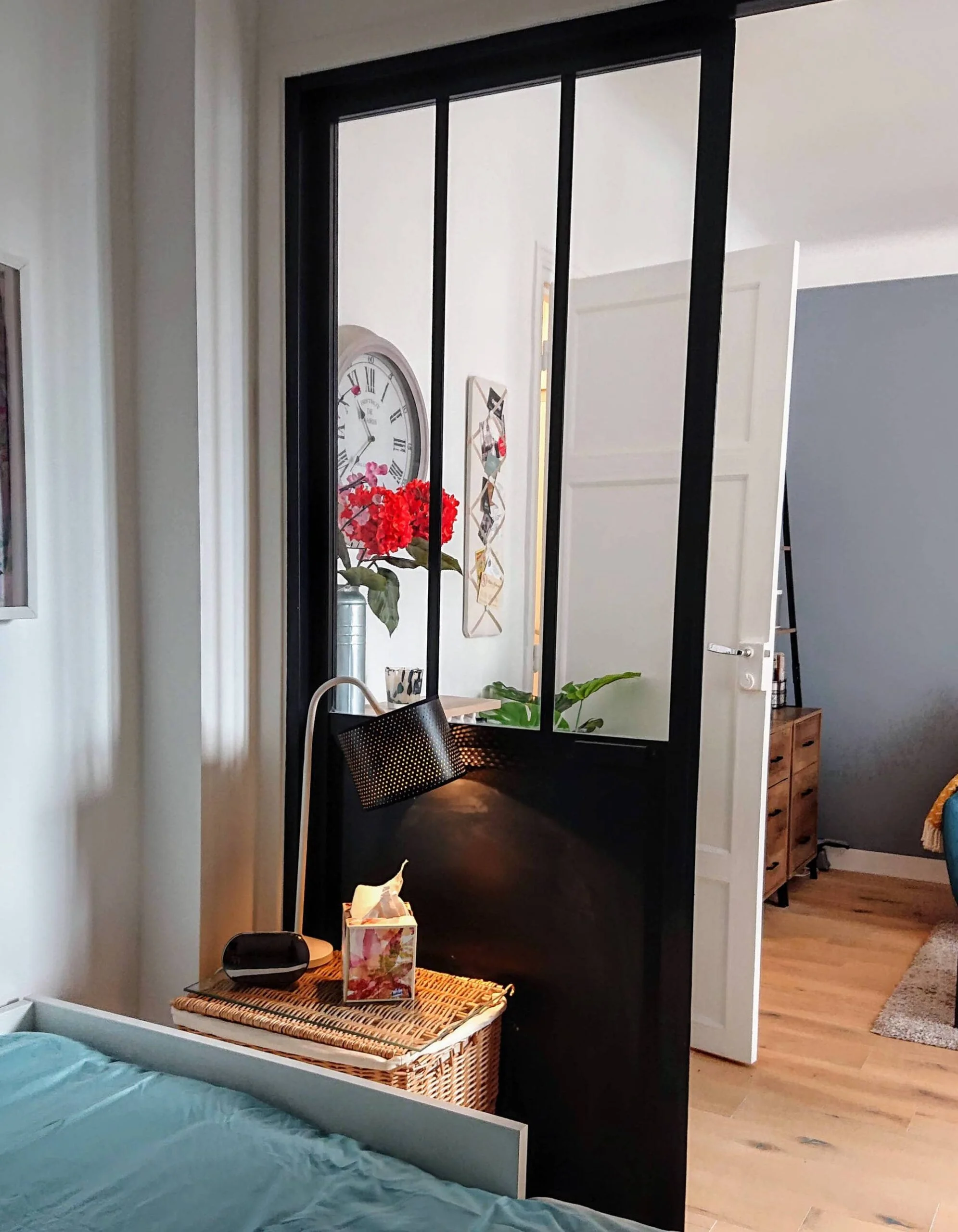 This apartment has been completely renovated by the owner - it was her dream to have her own place in this Paris neighborhood after living here as an expat for many years. The building is situated on a quiet passage, but only steps away from the hustle and bustle of rue Cler, with shops, pharmacies, grocery stores and restaurants at your fingertips. When you first walk into the sun-filled apartment located on the 4th floor of this elevator building, you will find yourself in an entryway with a closet where you can leave your coat, shoes, shopping caddy and more.