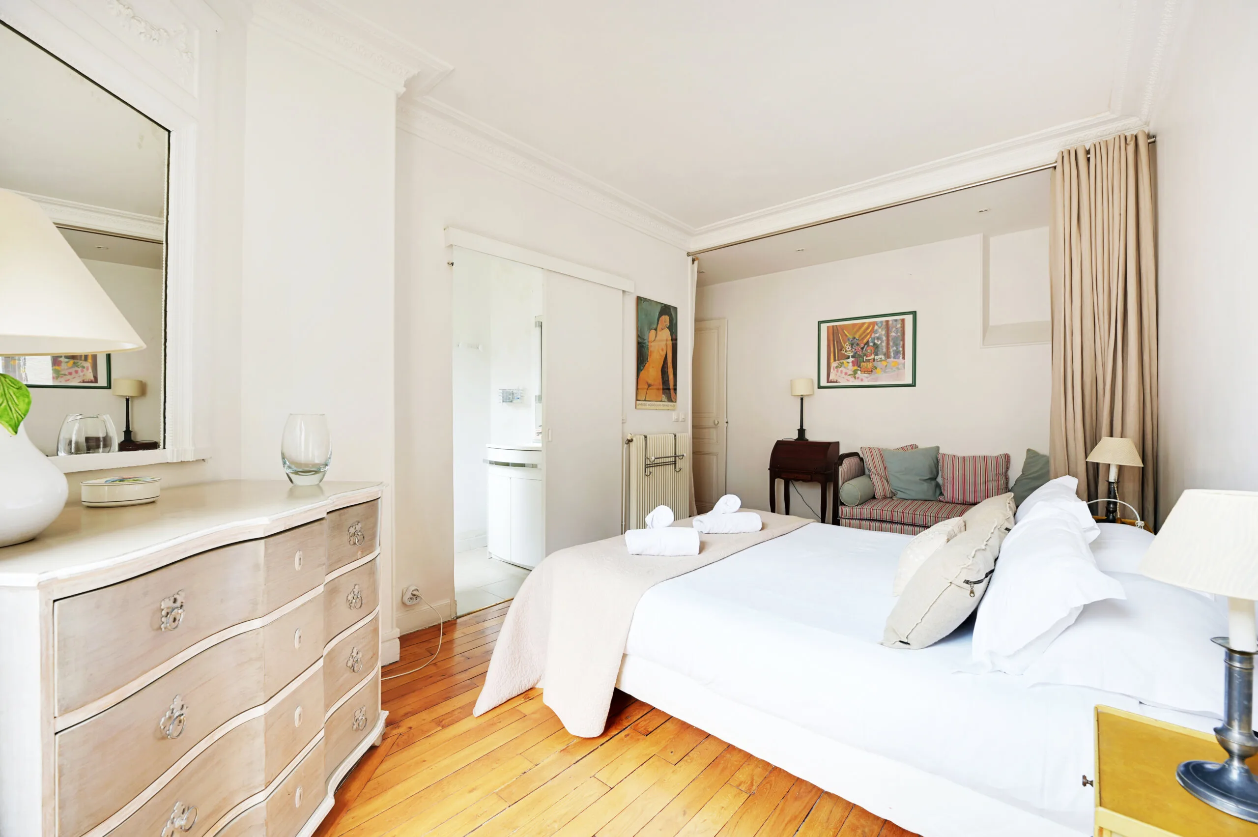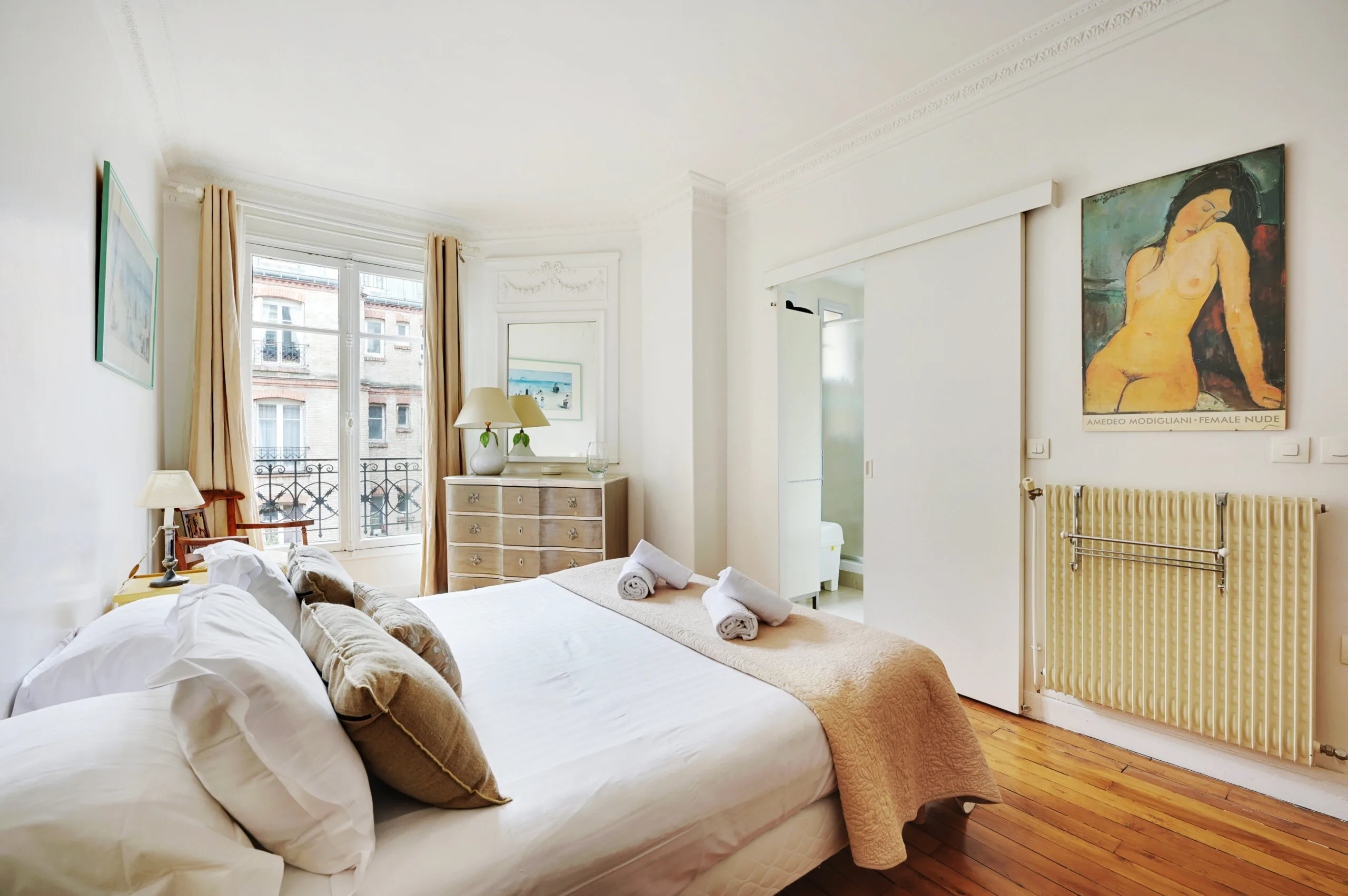 The owner has taken great care in decorating the apartment with art, antiques and more. I am sure you will truly feel like you are living as a Parisian staying here.